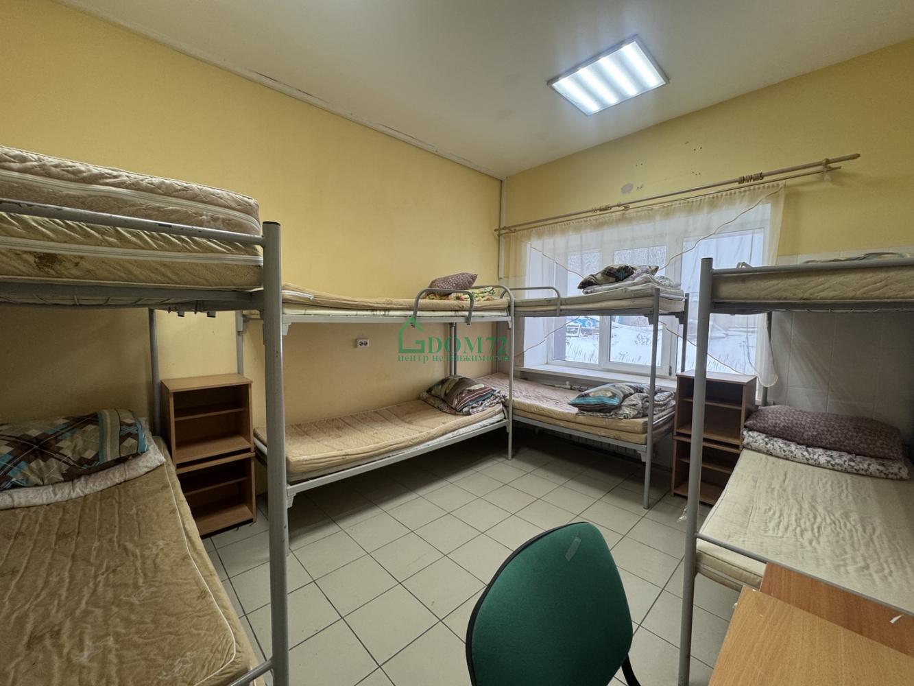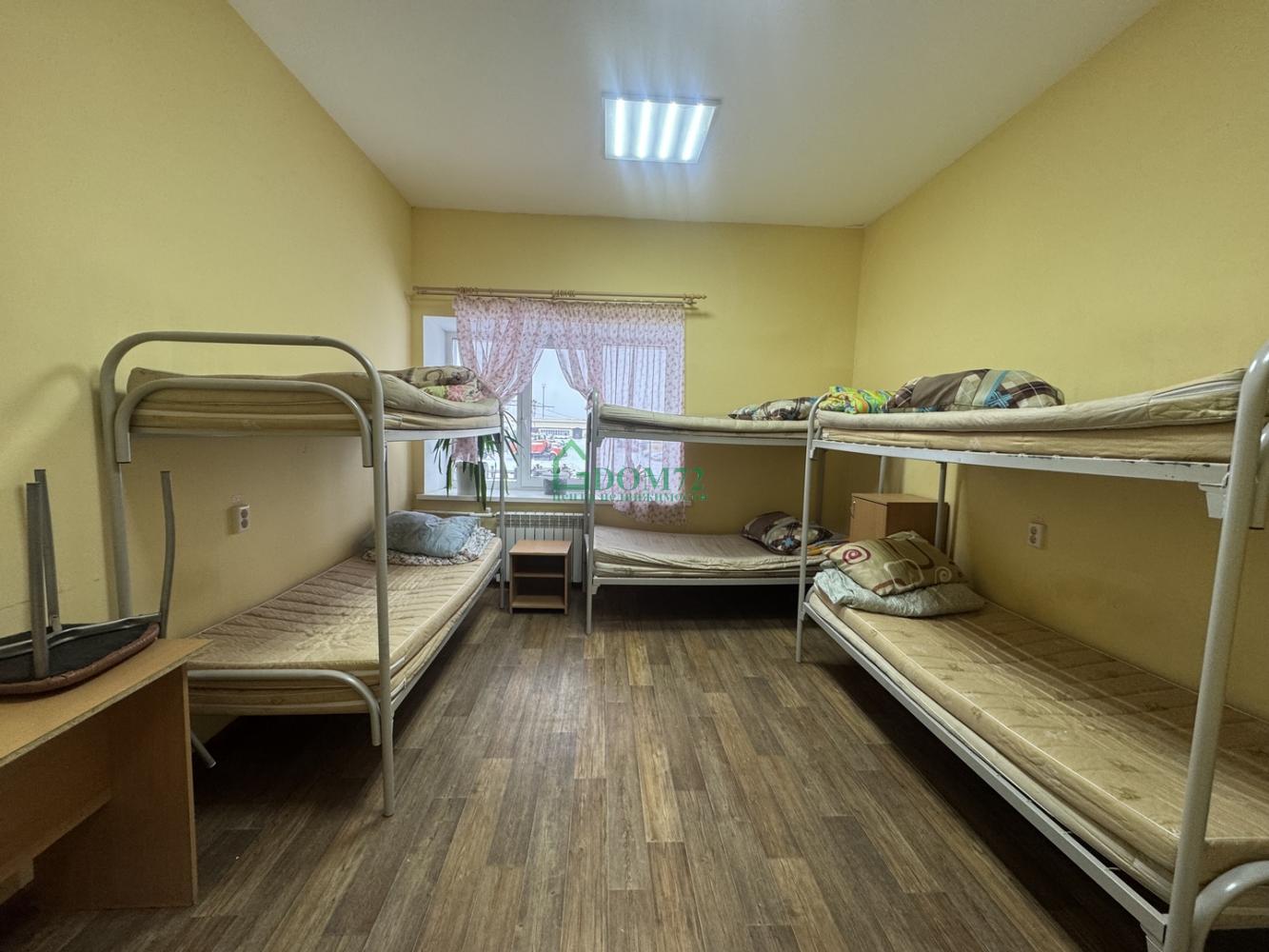Сдается в аренду хостел (общежитие) район БСИ-2 Промзона, в 8 км от города Тобольска. Двухэтажное отдельно стоящее здание общей площадью 1218 кв.м. 28 номеров, общее количество койко-мест 236, номера оснащены всем необходимым для комфортного проживания. Отельные комнаты с размещением от 6 до 12 мест, на каждом этаже имеется сан.узлы (кабинки), умывальники, душевые кабинки. прачечная (оборудованная стиральными машинами). Отопление и горячая вода круглый год. Имеется комната отдыха, столовая обеденная зона (столы стулья), кухня укомплектована холодильниками, СВЧ-ПЕЧЬ, кулер, электрочайник, электроплита. Отдельная раздевалка, помещение для сушки одежды (рабочей спец.одежды) с вентиляцией, В каждой комнате укомлектованные кровати, новые матрасы и постельные принадлежности. В местах общего пользования выполнен ремон, установлены пластиковые окна, вентиляция, пожарная и охранная сигнализация, видеонаблюдение, Интернет. Круглосуточная охрана, ежедневная уборка, замена и стирка постельного, круглосуточно в здании находится охрана, имеется тревожная кнопка. Имеется специально отведённое место для курения, есть площадка для подъезда автобуса, хостел находится в отдалении от города, что препятствует негативным отзывам горожан и