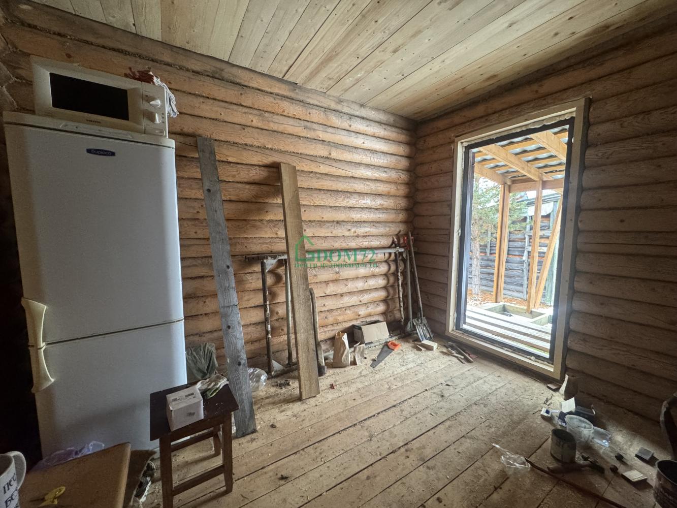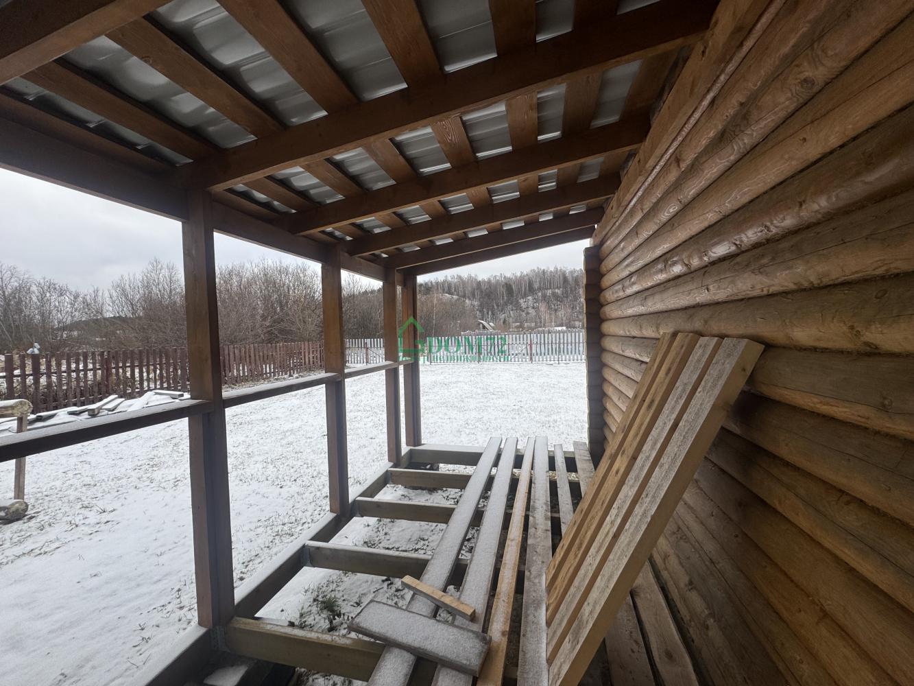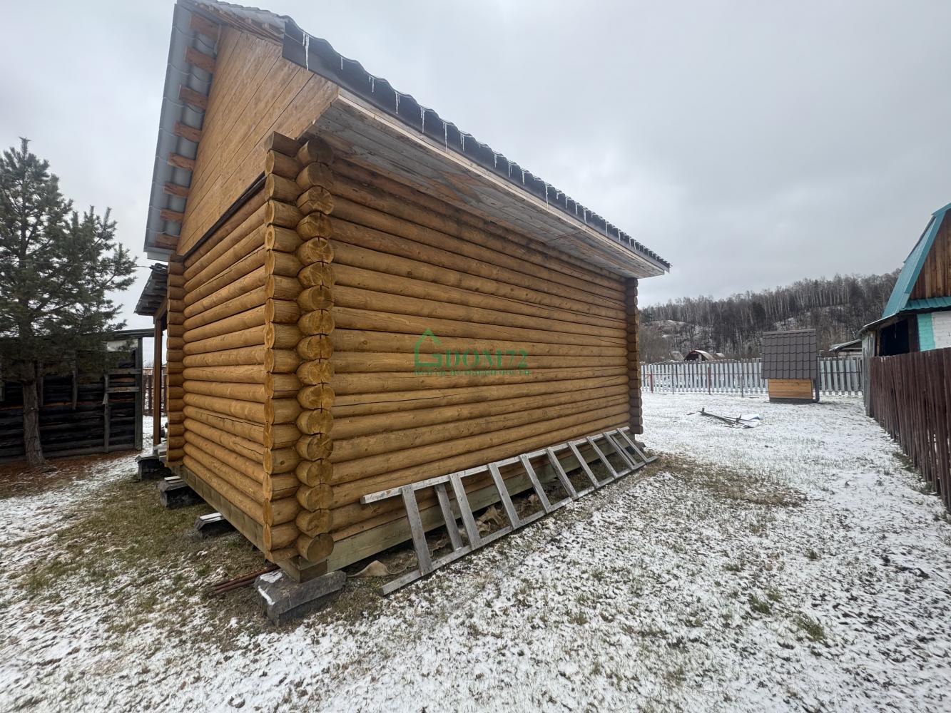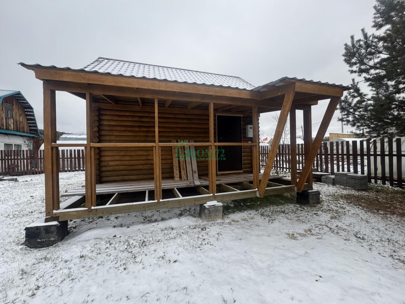 На территории — баня из оцилиндрованного бревна 6×4 м с террасой. Внутри уже сделаны пол, потолок, установлена печь, осталось немного доделать — и можно париться хоть каждые выходные! 🔥