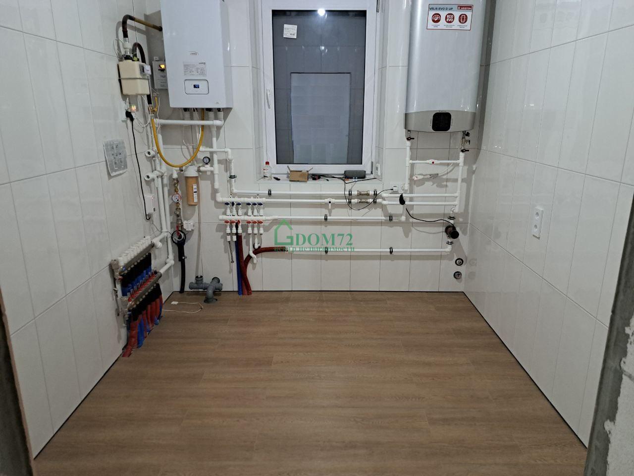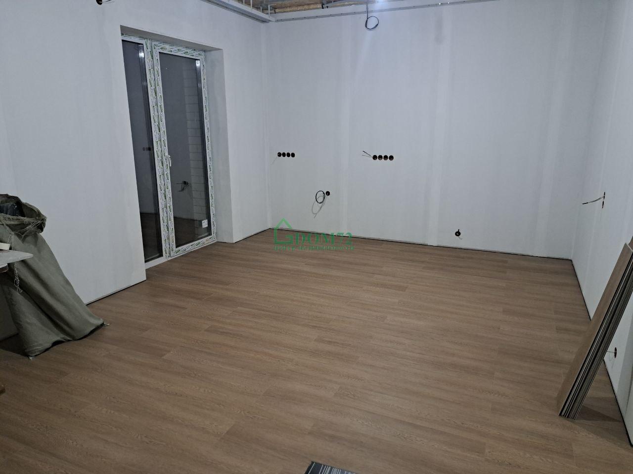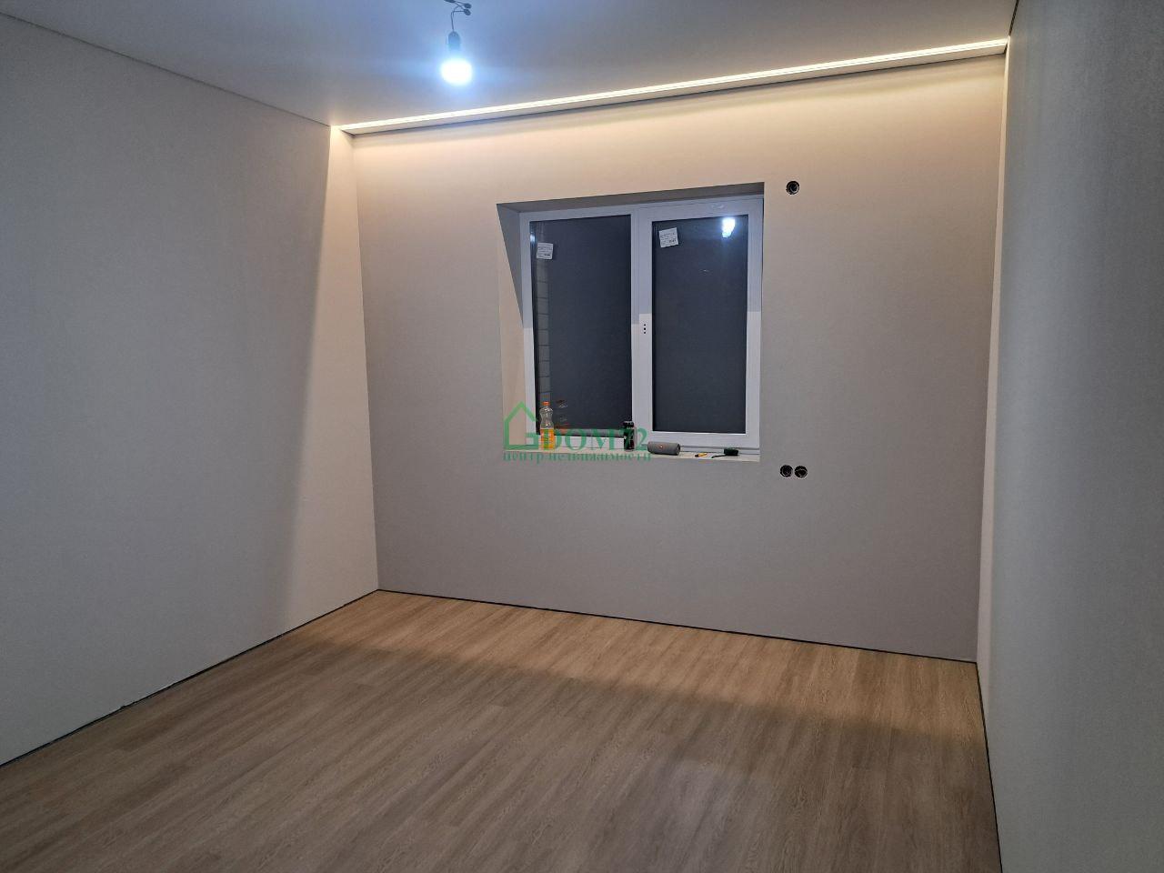 Стены оштукатурены по маякам, стяжка пола под укладку чистового покрытия.